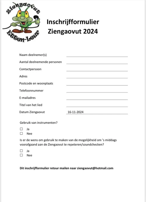 Het zou zonde zijn als de ruim 50-jarige traditie van de Ziengaovut Etten-Leur dit jaar niet door kon gaan. Dus ben jij die vriendengroep of carnavalsclub die we zoeken? Of denk je 'ik wil in de schijnwerpers staan en het carnavalslied voor Etten-Leur schrijven'? Meld je dan nu aan voor de Ziengaovut 2024!